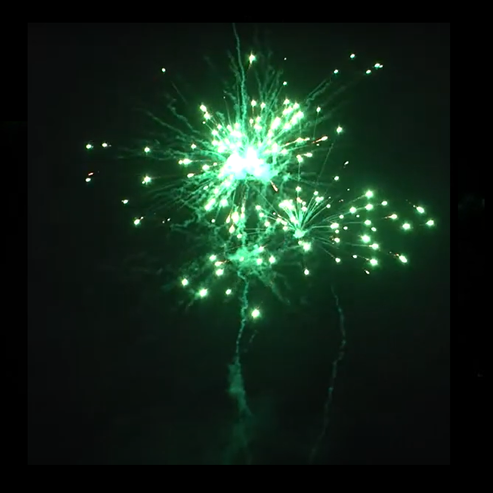 Whistling tail to red/green/blue peonies. Whistling tail to gold willow & silver strobing stars.